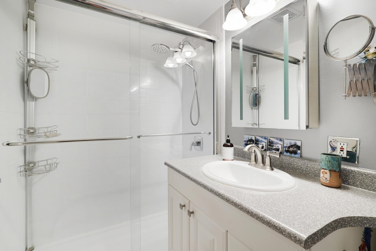 Bright and beautifully updated 1 bedroom & den (possibly a small 2nd bedroom), 1 bathroom home offering comfort, privacy, and excellent amenities. The renovated kitchen features an opened wall, modern cabinetry, updated counters, and new appliances. The bathroom was updated with a sleek stand-up shower and new vanity. All lighting fixtures have been replaced, along with two windows and a patio door. Enjoy a private, treed outlook from the balcony. Includes two parking spaces (one covered, one uncovered) and an extra-large storage locker. Shared laundry is conveniently located just across the hall. Well-maintained building with outdoor pool, gym, sauna, social room, and workshop. Great safe area with park & school closeby. OPEN: Sun Dec 21st 2:00 - 3:00PM