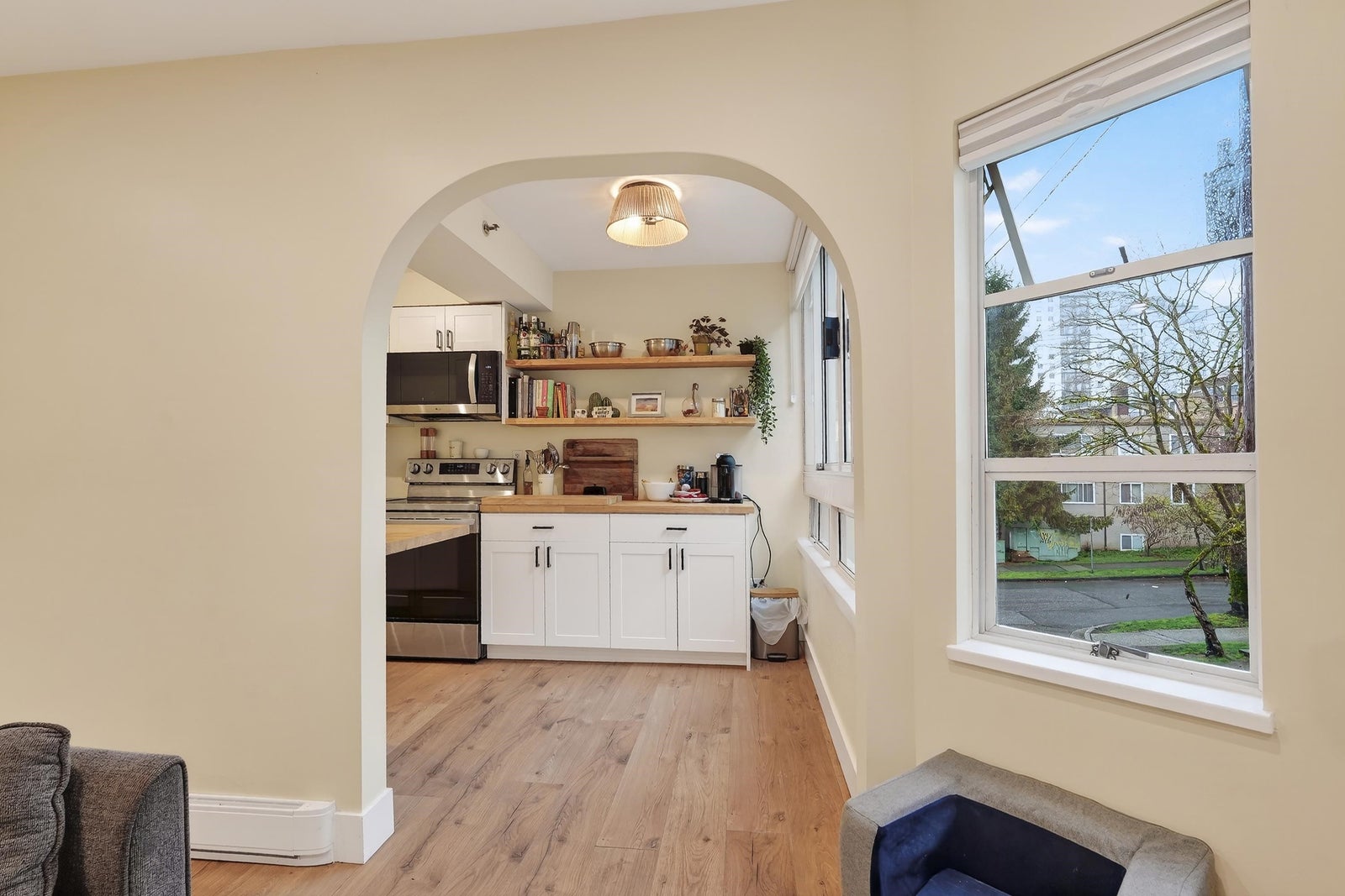 You can’t beat this location! Just a couple blocks from the beach in the heart of the West End, this beautifully updated 1 bed + den offers the perfect mix of city living and quiet comfort. Inside you’ll find a bright, functional layout with a versatile den -ideal for a 2nd bedroom or home office. The home features an updated and extended kitchen, new cabinetry, countertops, flooring, lighting and in-suite laundry, plus a cozy gas fireplace. Enjoy a peaceful, private feel just steps to shops, restaurants and the seawall. Pet-friendly building (3 pets allowed) with parking and storage included. Move-in ready! Open house Sunday March 29th 2-4pm